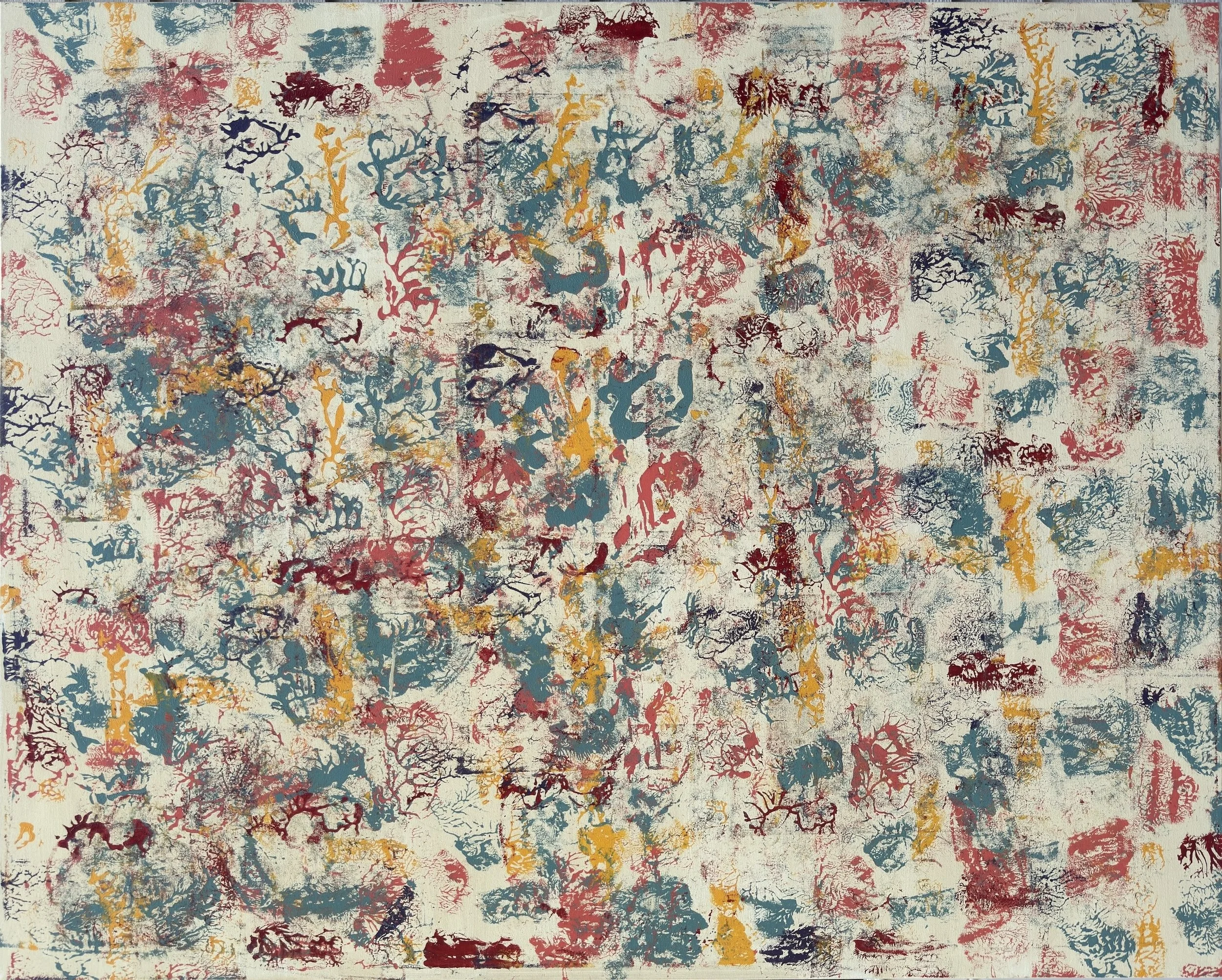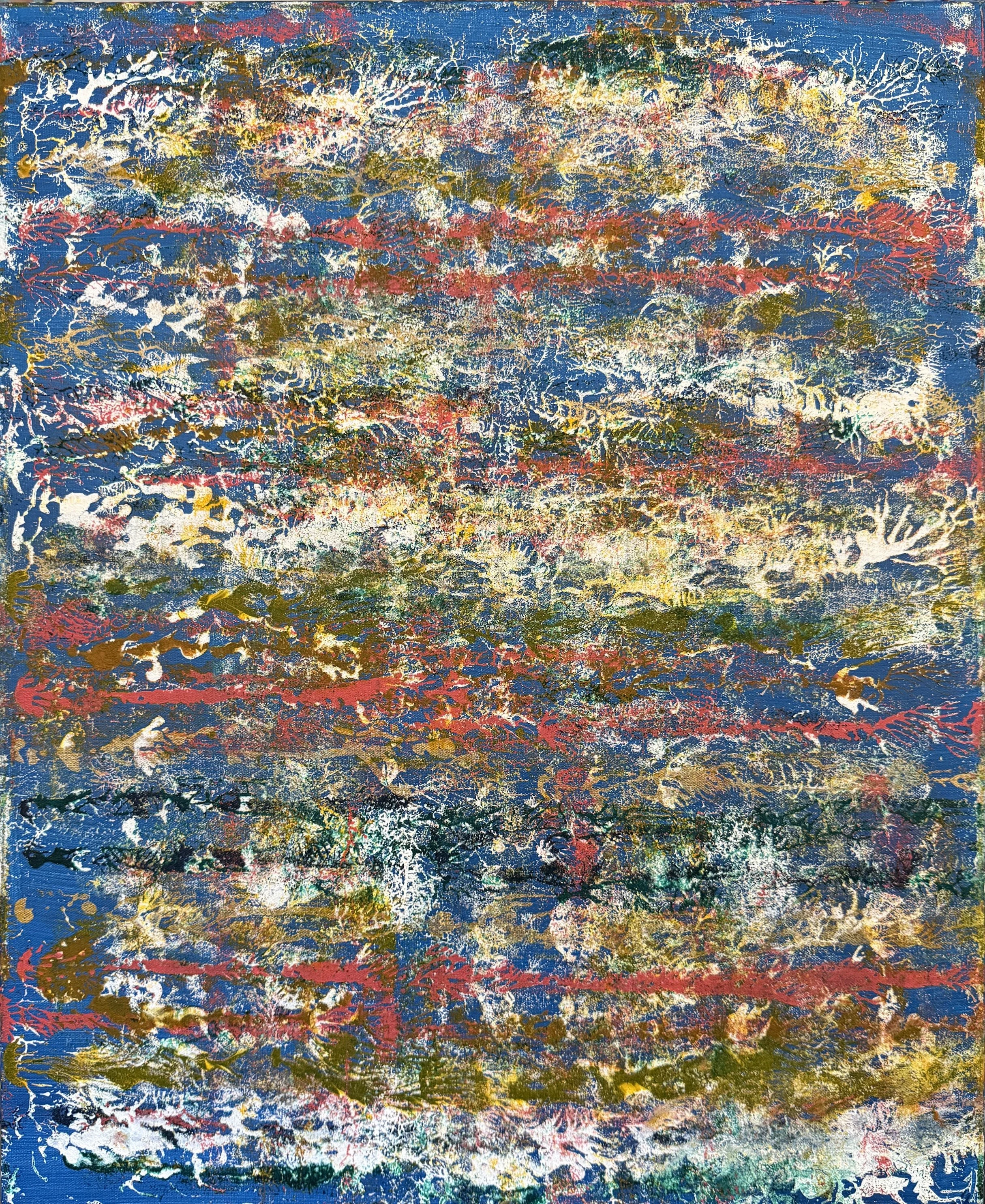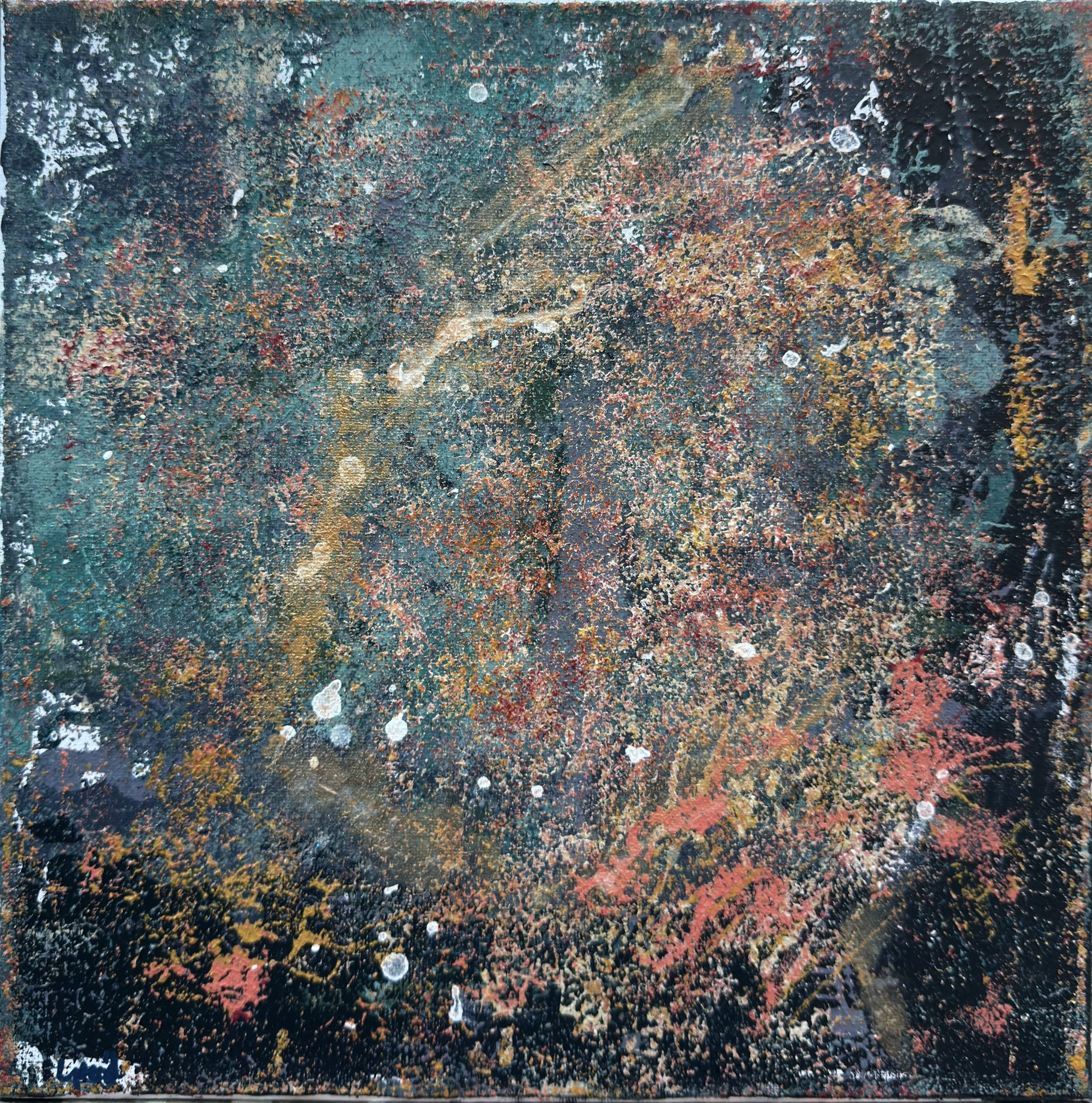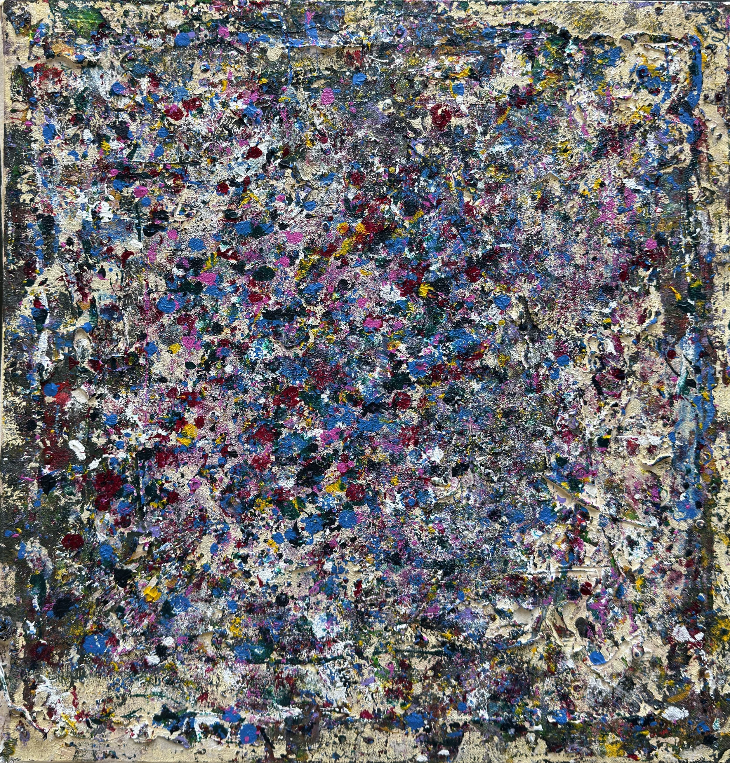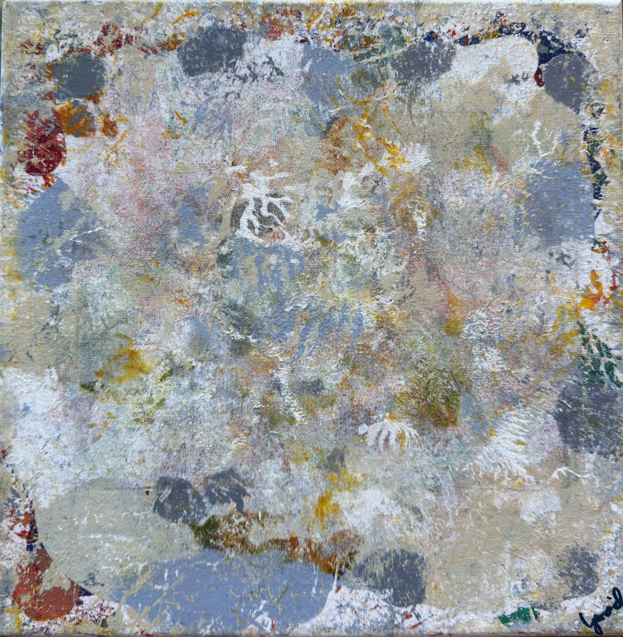 Small Works. All of the larger works include layers constructed by painting directly on small canvases and pressing them against the main canvas with varied manual application techniques to achieve patterns and textures that make each painting also a shallow relief. Some of these small canvases become paintings unto themselves (others are just a blurry mess) and are shared here as a “calf” of the larger work.