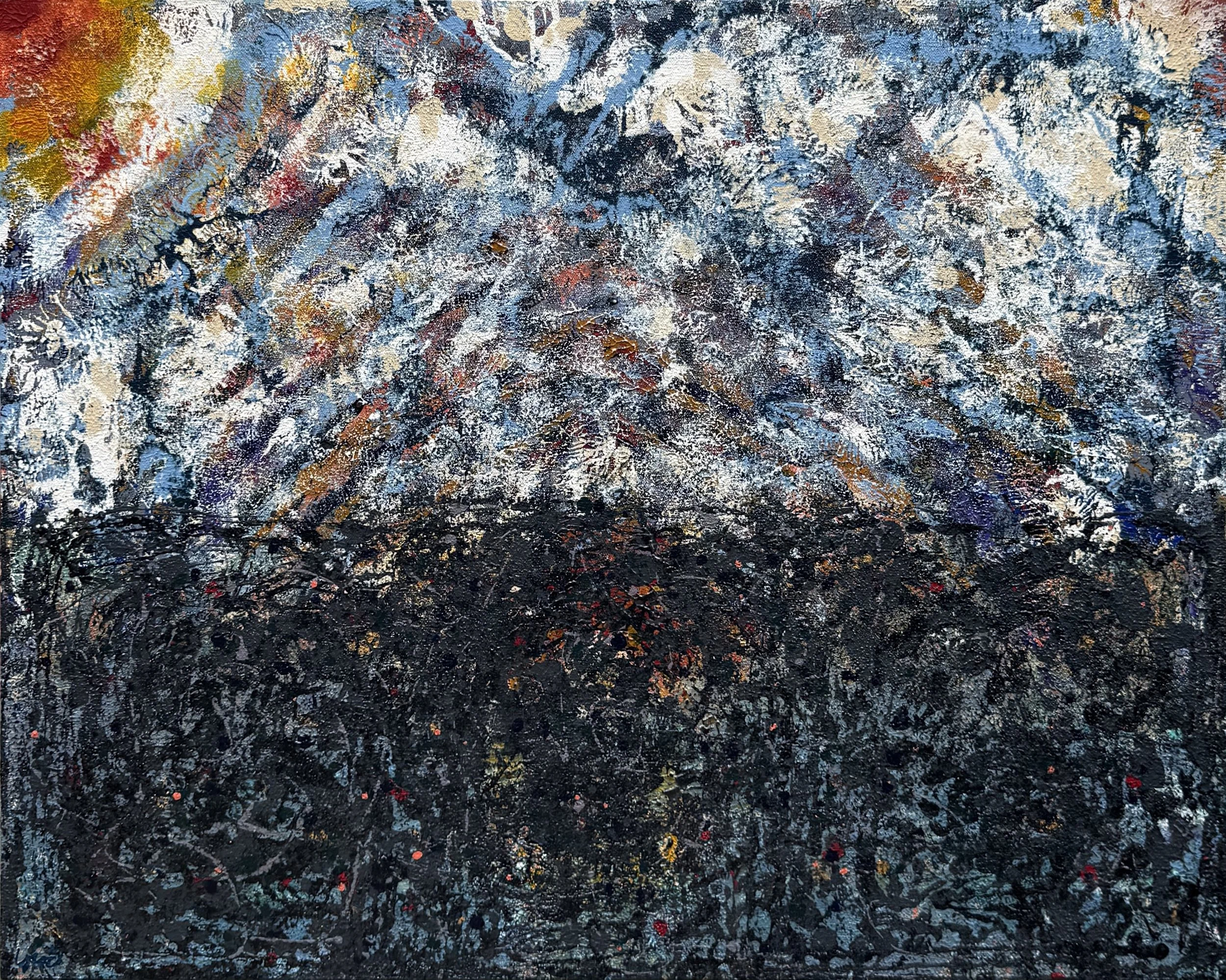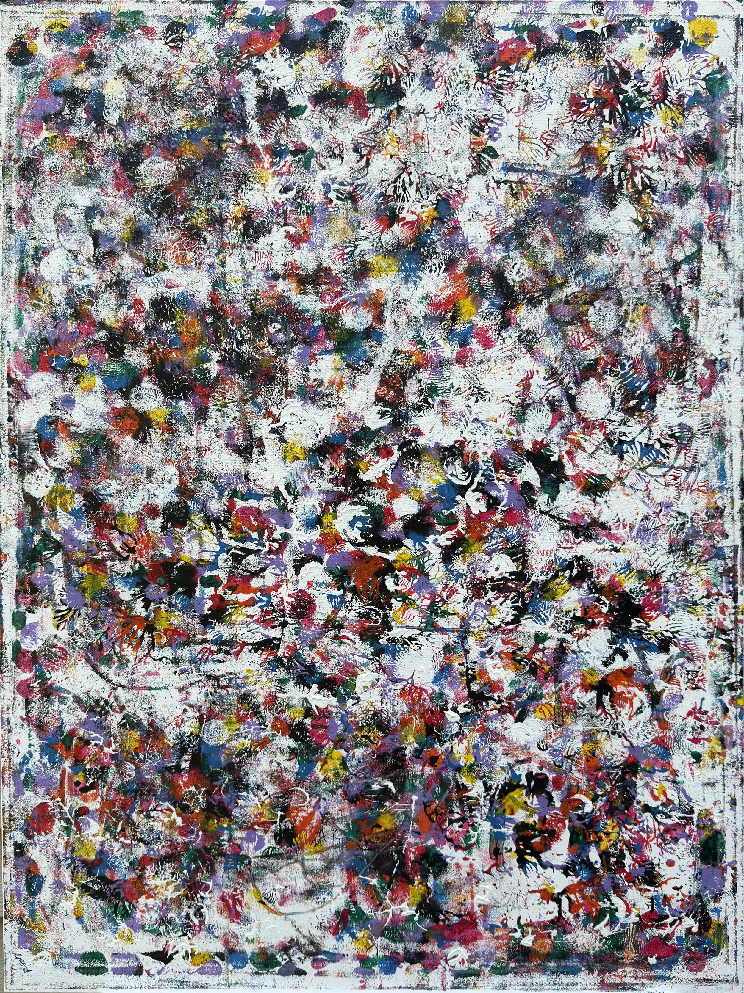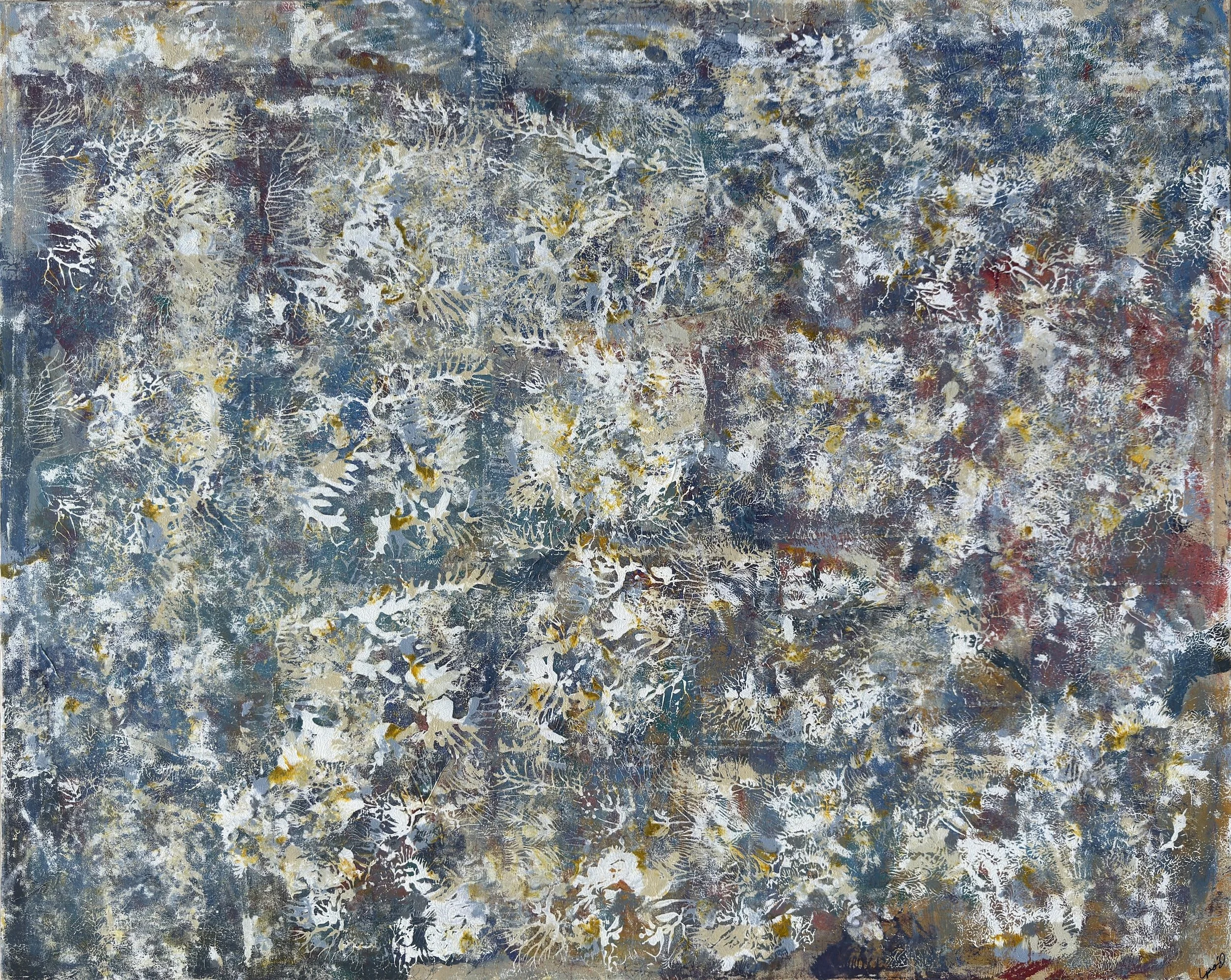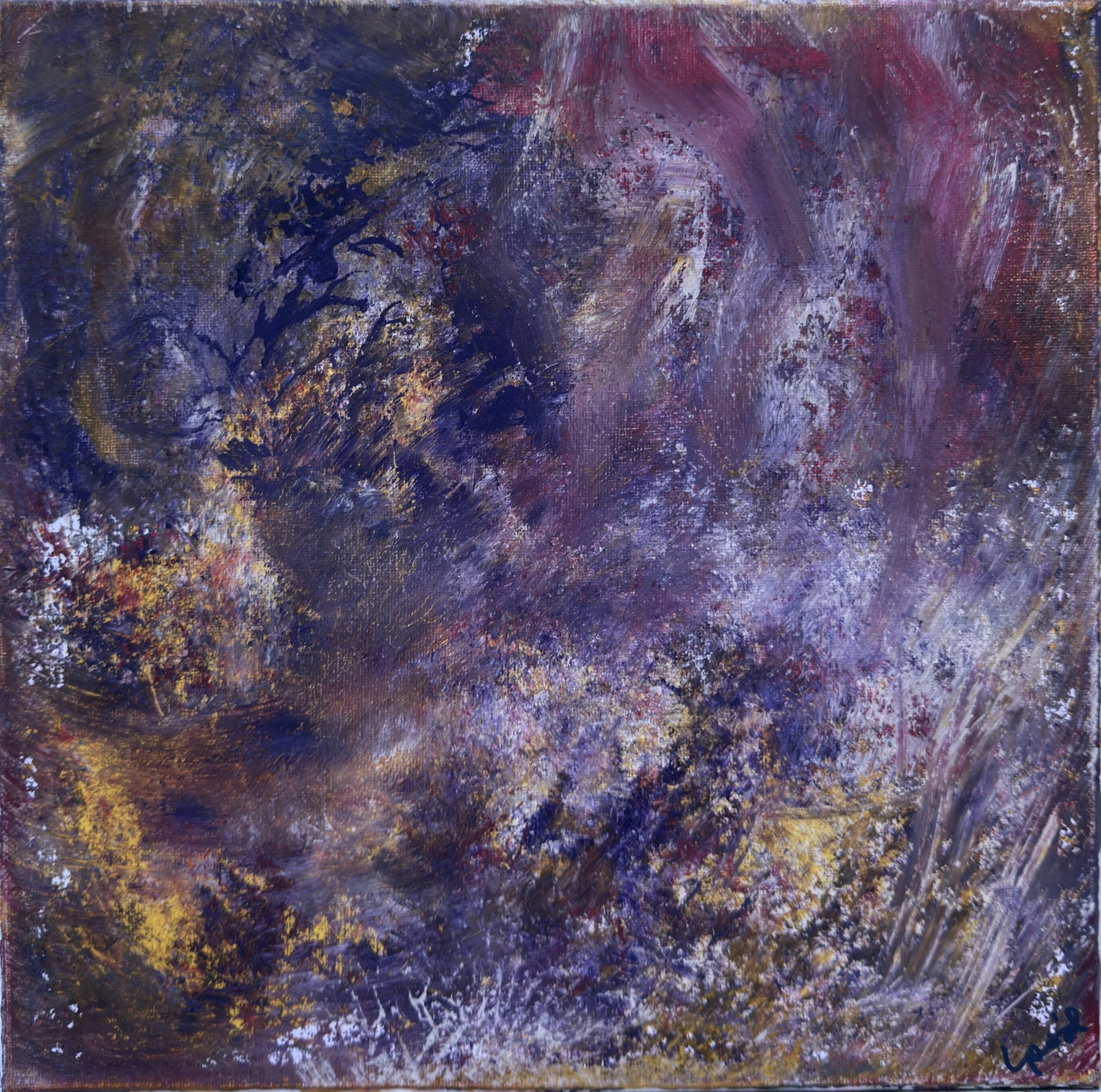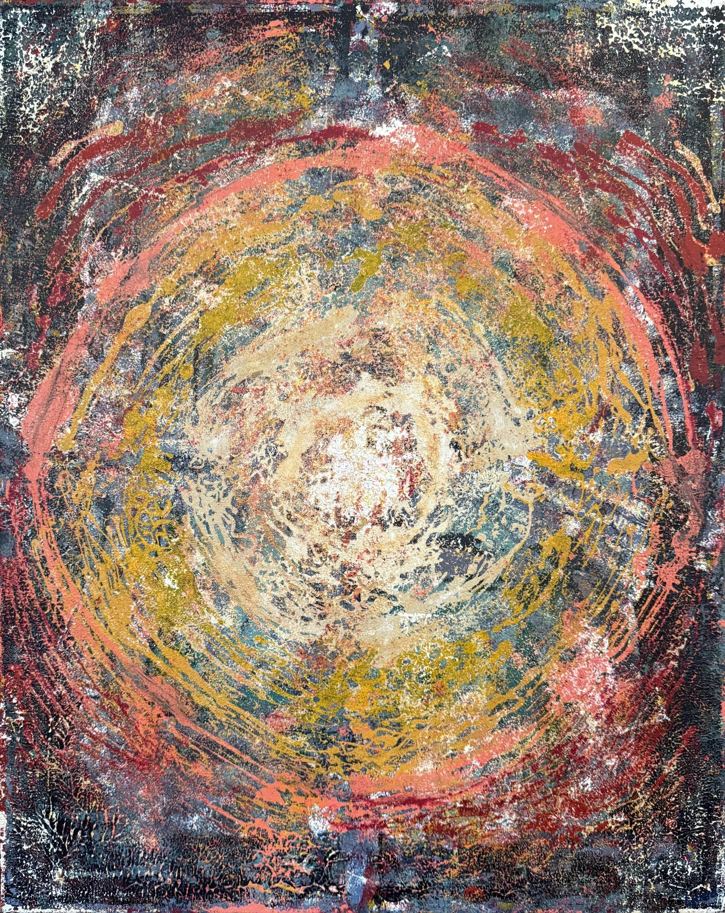 Small Works. All of the larger works include layers constructed by painting directly on small canvases and pressing them against the main canvas with varied manual application techniques to achieve patterns and textures that make each painting also a shallow relief. Some of these small canvases become paintings unto themselves (others are just a blurry mess) and are shared here as a “calf” of the larger work.